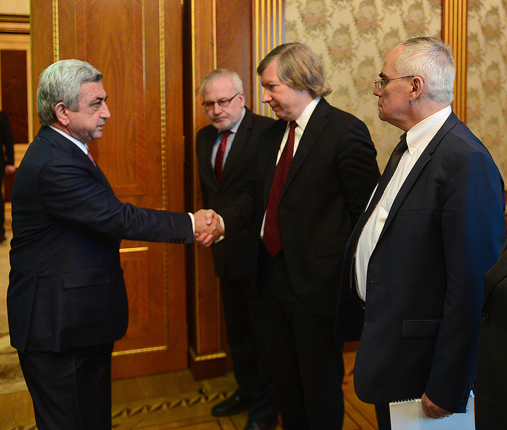 Նախագահ Սերժ Սարգսյանն այսօր ընդունել է ԵԱՀԿ Մինսկի խմբի համանախագահներ Իգոր Պոպովին (Ռուսաստան), Ջեյմս Ուորլիքին (ԱՄՆ), Պիեռ Անդրիոյին (Ֆրանսիա) և ԵԱՀԿ գործող նախագահի անձնական ներկայացուցիչ Անջեյ Կասպրշիկին, այս մասին տեղեկացնում է ՀՀ Նախագահի աշխատակազմի հասարակայնության և տեղեկատվության միջոցների հետ կապերի վարչությունը։