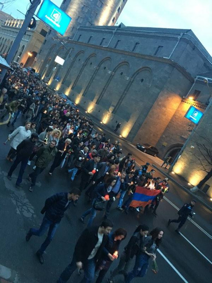 Ստ. Շահումյանի հրապարակից մեկնարկեց «Լռության երթ»՝ ի հիշատակ զոհված զինվորների: Երթի մասնակիցները քայլեցին դեպի Եռաբլուր, որտեղ տեղի կունենա խորհրդանշական մոմավառություն: