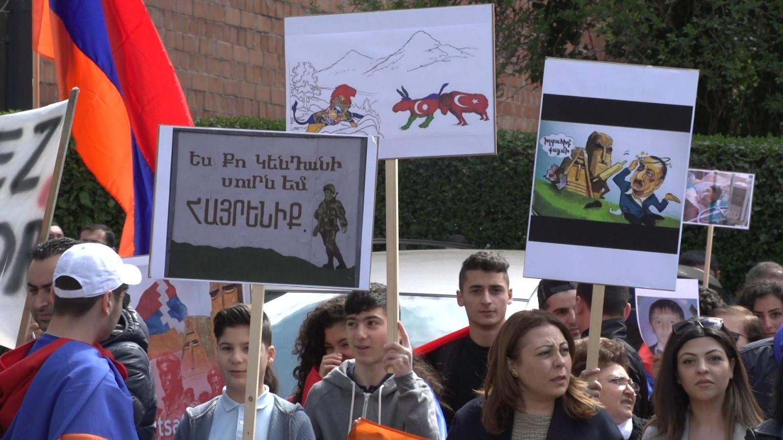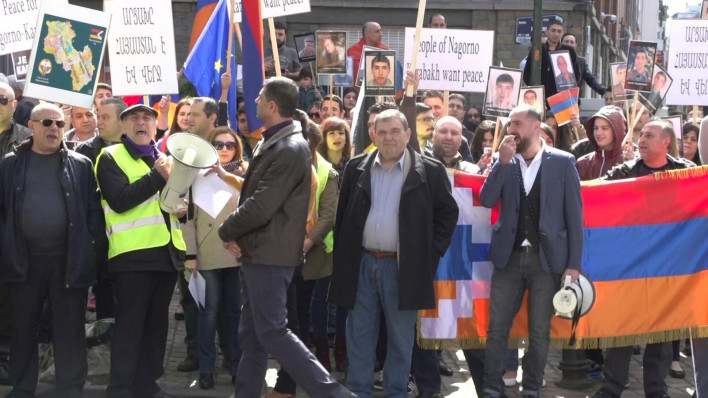 Ապրիլի 10-ին բելգիահայ համայնքը բողոքի ցույց է անցկացրել Բրյուսելում Ադրբեջանի դեսպանատան առջև: