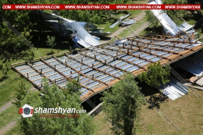 Երեկ՝ մայիսի 26-ին, SHAMSHYAN.com-ը ֆոտոռեպորտաժ էր հրապարակել Արմավիրի մարզում տեղի ունեցած արտակարգ իրավիճակի վերաբերյալ, երբ Արազափ գյուղում ուժեղ քամին տակնուվրա էր արել գյուղի ակումբի տանիքը՝ վնասելով գյուղացիների շենք-շինությունները, ջերմոցներն ու այգիները։