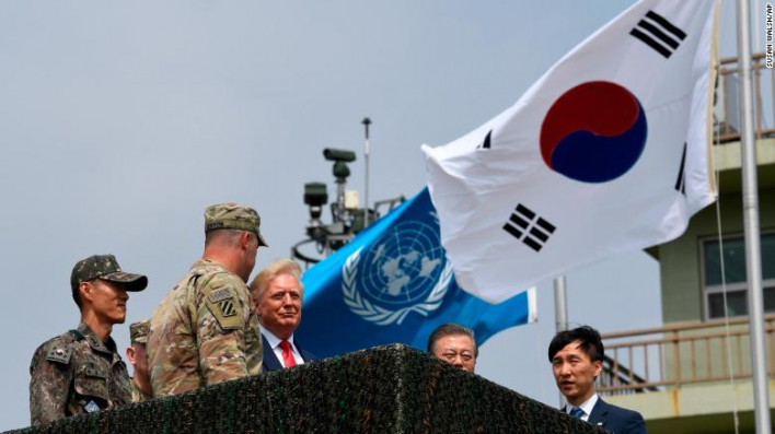 ԱՄՆ նախագահ Դոնալդ Թրամփը Կորեական թերակղզու ապառազմականացված գոտի է այցելել, որտեղ կհանդիպի Հյուսիսային Կորեայի առաջնորդ Կիմ Չեն Ընին, գրում է Daily Mail-ը: