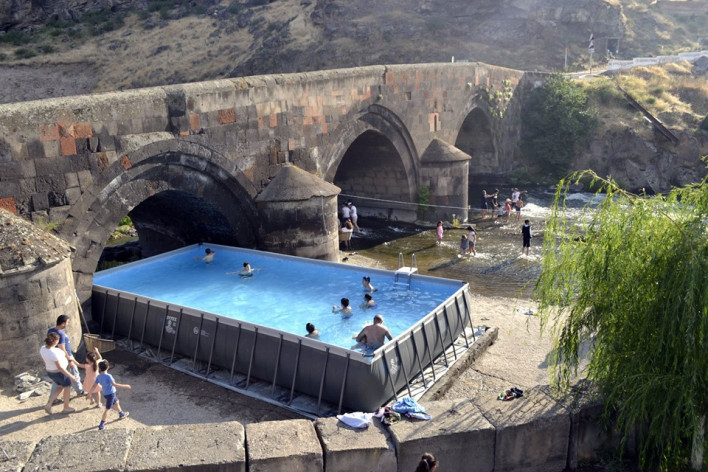 Օշականում Նահապետ Եդեսացի կաթողիկոսի կողմից 1691-1706 թթ. կառուցված պատմական կամուրջի տակ անհասկանալի ծագման լողավազան է տեղադրվել և հատուկ պահպանության գոտում գտնվող պատմական միջավայրը վերածվել ժամանցի վայրի: Լողավազանը, ինչպես երևում է լուսանկարից, հիմնարար կառույց չէ, այն ժամանակավոր կոնստրուկցիա է, որը տեղադրվել է ուղիղ կամրջի կամարաձև թռիչքի տակ և ամբողջությամբ խաթարել պատմական հուշարձանի տեսքը: