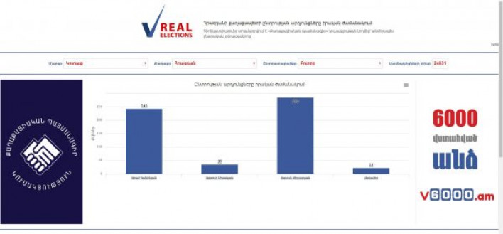 Հրազդանում առաջադրված թեկնածու Սասուն Միքայելյանի շտաբը ստեղծել էր առցանց համակարգ` realelections.am, որի միջոցով տեղեկացվում էր, թե քանին ընտրող է մասնկացել: Այժմ նույն համակարգի միջոցով հնարավոր է հետևել նար ձայների հաշվարկին, որն արդեն մի շարք տեղամասերում մեկնարկել է: Ընդգծենք, որ մինչ այս պահի տվյալներով Սասուն Միքայելյանն առաջատար է: Հավելենք նաև, որ կան տեղամասեր, որտեղ դեռ ձայների հաշվարկը չի սկսվել: