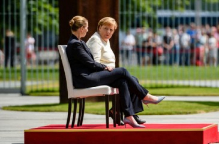 Գերմանիայի կանցլեր Անգելա Մերկելը և Դանիայի վարչապետ Մետտե Ֆրեդերիկսենը Բեռլինում բանակցություններից առաջ երկու երկրների ազգային օրհներգերն ունկնդրել են նստած, գրում է Speigel պարբերականը:
