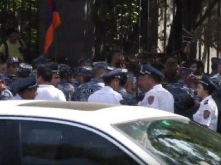 NEWS.am-ի թղթակիցը հաղորդում է, որ այն բանից հետո, երբ ոստիկանները թույլ չտվեցին բողոքի ակցիայի մասնակիցներին մտնել ԱԺ այգի, նրանք ցանկացան փակել պողոտան: