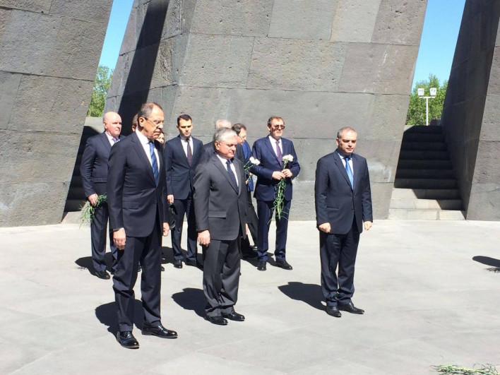 Երեկվանից պաշտոնական այցով Հայաստանում գտնվող Ռուսաստանի արտաքին գործերի նախարար Սերգեյ Լավրովն այսօր վաղ առավոտյան հայ գործընկեր Էդվարդ Նալբանդյանի հետ այցելեց Ծիծեռնակաբերդ, որտեղ ծաղկեպսակ դրեց Հայոց ցեղասպանության զոհերի հիշատակին: