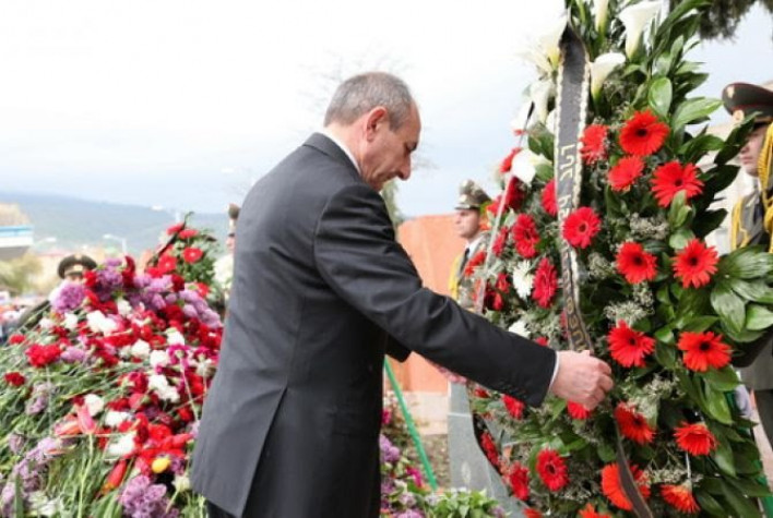 Բակո Սահակյանը Ստեփանակերտում ծաղիկներ է դրել Մեծ եղեռնի զոհերի հիշատակը հավերժացնող հուշակոթողին