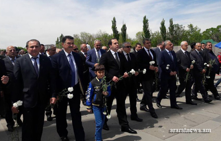 Քիչ առաջ Ծիծեռնակաբերդի հուշահամալիր այցելեց նաեւ ԱԱԾ նորանշանակ ղեկավար Գեորգի Կուտոյանը։ Անմար կրակի մոտ ծաղիկներ դնելուց հետո. Կուտոյանին լրագրողները փորձեցին հարցեր ուղղել, սակայն նա հրաժարվեց պատասխանել՝ «Այսօր այդ օրը չի»,- նշեց նա։