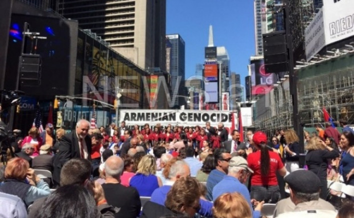 Ապրիլի 24-ին Նյու Յորքի Թայմս Սքուեր հրապարակում տեղի ունեցավ Հայոց Ցեղասանության 101-րդ տարելիցին նվիրված միջոցառում: Հազարավոր հայեր հավաքվել էին Նյու Յորքի կենտրոնական հրապարակում՝ պահանջելու Ցեղասպանության ճանաչումը: Ներկաների առջեւ հանդես եկան ԱՄՆ ներկայացուցիչների պալատի անդամ Ֆրենկ Փալոնը, Նյու Յորք նահանգից սենատոր Չակ Շումերը, Նյու Ջերսի նահանգից սենատոր Ռոբերտ Մենենդեսը, ազգությամբ թուրք պրոֆեսոր Ումիթ Քուրթը, որը Ցեղասպանության ընդունման կողմնակից է, հայկական կազմակերպությունների ղեկավարներ: Բանախոսները ԱՄՆ-ի Սենատին եւ Կոնգրեսին կոչ արեցին ընդունել Հայոց Ցեղասպանությունը, խոստացան շարունակել իրենց գործունեությունը Հայոց Ցեղասպանության ճանաչման հարցում: Բացի այդ, հավաքվածները դատապարտեցին Ադրբեջանի ագրեսիան Լեռնային Ղարաբաղի դեմ, նշեցին, որ ոչ մի դեպքում չպետք է աջակցություն ցուցաբերել Ադրբեջանի պես երկրին: Ըստ սենատորների մինչ ապրիլյան պատերազմը Իլհամ Ալիեւը եկել էր ԱՄՆ, որից հետո հենց եղավ հարձակումը ԼՂ-ի վրա, եւ այդ այցը պատահականություն չէր: