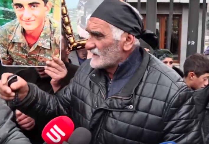 «Ոչ մեկս, ոչ մի քայլ, ոչ մի տեղ չենք գնալու, մինչև մեզ ռեալ պատասխան չտան՝ ի՞նչն է մեր զինվորի մահվան պատճառը։ Ես ներկա եմ եղել դիահերձմանը։ 2 ժամ 40 րոպե տևած դիահերձման ժամանակ երեխայի վրա գտել են հին ու նոր վերքեր՝ մարմնի տարբեր հատվածներում։ Պարզից պարզ է, որ շուտվա դեպքեր ա եղել, ու էսօր իմ թոռից վրեժը լուծել են։ Թող պարզեն՝ ո՞վ ա սպանել իմ թոռանը, ուրիշ վարկածներ չկպցնեն, յանի ինքնասպան ա եղել: Դին դիահերձարանում ա, ռեալ պատասխան չտան՝ դին կբերեմ էստեղ, օրերով կմնանք»,-այս մասին այսօր ասաց, դեռևս չպարզված հանգամանքներում մահացու հրազենային վիրավորում ստացած, ազգությամբ եզդի Արթուր Աջամյանի պապիկը։
