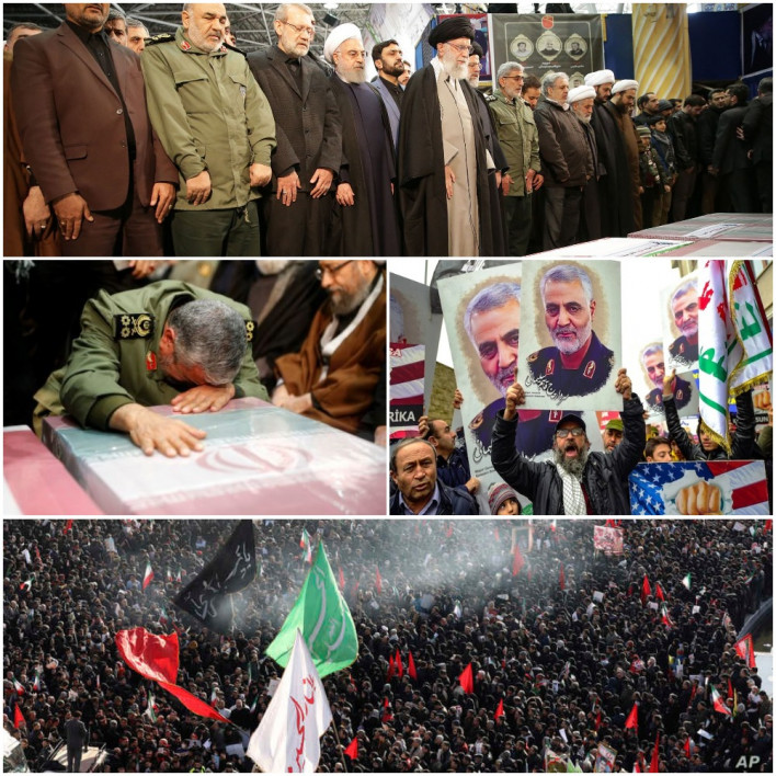 Երեկ Տասնյակ հազարավոր սգավոր իրանցիներ լցվել էին Թեհրանի փողոցներ, վանկարկում էին՝ «Մա՛հ Ամերիկային», անիծում են Դոնալդ Թրամփին, երդվում են վրեժ լուծել զորավար Քասեմ Սոլեյմանիի համար: Իրանը հրաժեշտ էր Սոլեյմանիին: Մահմեդական սգո արարողակարգը վարում էր անձամբ Իրանի գերագույն հոգևոր առաջնորդ այաթոլահ Ալի Խամենեին: Իրանի բարձրագույն ղեկավարը միշտ ընդգծել է, որ բարձ է գնահատում Սոլեյմանիի հավատարմությունը, զորավարի ունակությունները և երկրին մատուցած ծառայությունները: Նա նույնիսկ տարբեր առիթներով նշել է, թե Սոլեյմանին իր համար, կարծես, հարազատ որդին լինի: