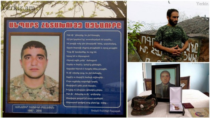 «Պատերազմում ես թանկ եմ վճարել, որովհետև ողջ ընտանիքս եմ տվել խաղաղության համար` հայրս , քեռիս, եղբայրս, բոլորը զոհվել են Ղարաբաղի համար` այս հողում»,- ասում է Ազնաուրի զինվորական եղբայրը: 30-ամյա Ռոմա Բալայանը հրամանատար է, նա 90-ականներին կորցրել է հորը, իսկ չավարտված պատերազմում` եղբորը: Ռոման նաև բանաստեղծ է, եղբոր մասին տողերն ինքն է գրել ցուցատախտակին: «Իմ հոգու ցավը Ղարաբաղիս հողում մեռնելն է»,- այս տողերն էլ սեփական տան բակում` ժանգոտ թիթեղի վրա գրել է, երբ դեռ Արցախում «խաղաղություն էր»: