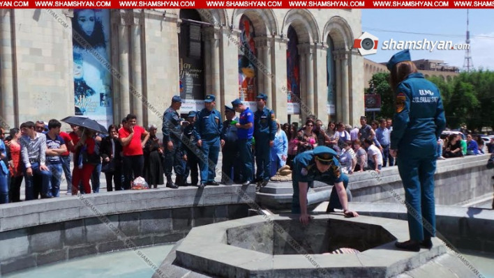 Արդեն 1 ժամից ավելի է, արտակարգ իրավիճակ է ստեղծվել Հանրապետության հրապարակում: Մոտ 50 տարեկան մի կին մտել է շատրվանների լողավազանի մեջ և հրաժարվում է դուրս գալ: Ինպես նշված վայրից հայտնում է ֆոտոլրագրող Գագիկ Շամշյանը, այս պահին փրկարարներն ու ոստիկանները փորձում են համոզել նրան, սակայն նա անհասկանալի խոսքեր ասելով՝ հրաժարվում է դուրս գալ այնտեղից: *** 14:00 Քիչ առաջ ֆոտոլրագրողը հայտնեց, որ փրկարարներն ու ոստիկանները մեծ դժվարությամբ կարողացան կնոջը դուրս բերել լողավազանից, ում տեղում բժիշկները բուժօգնություն ցուցաբերելով՝ տեղափոխեցին հիվանդանոց: Այդ կինը անընդհատ գոռում էր, որ իրեն ասել են, որ պետք է վերանա հին աշխարհը և իր միջոցով կառուցվելու է նոր աշխարհ: Փրկարարների աշխատանքը տեղում ղեկավարում էր ՀՀ ԱԻՆ ՓԾ փրկարար ծառայության կապիտան Արթուր Ճաղարյանը: Լուսանկարները՝ Գագիկ Շամշյանի