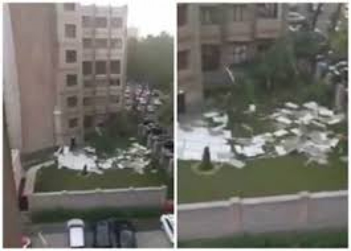 ՀՀ ՔԿ նոր շենքը երեկ Երևանում մոլեգնած ուժգին քամուց սկսեց «մերկանալ»