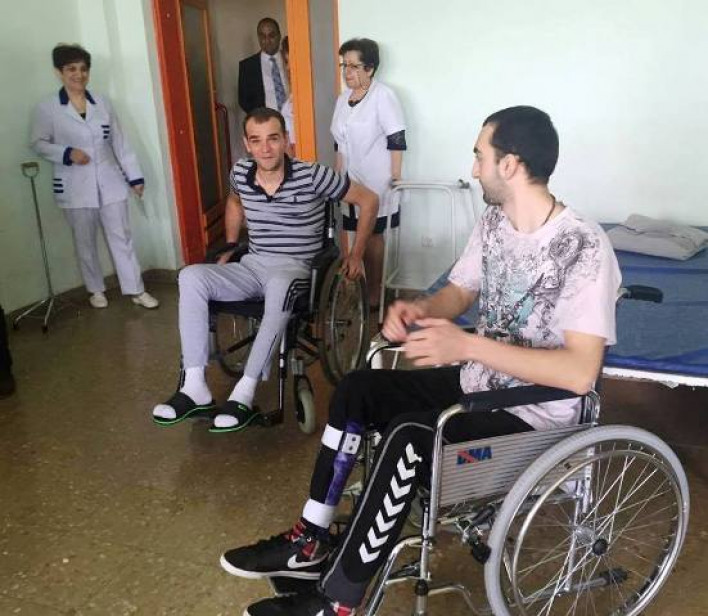 Իրականացված աշխատանքին տեղում ծանոթանալու նպատակով ՀՀ առողջապահության նախարար Արմեն Մուրադյանն այսօր հերթական անգամ այցելեց վերականգնողական բուժում ստացող վիրավորներին: Գլխավոր տնօրեն Ալեքսանդր Մնացականյանի ուղեկցությամբ ծանոթացավ յուրաքանչյուր հիվանդի առողջական վիճակին, քննարկեց բուժման հետագա մանրամասները: Նա բարձր գնահատեց վերականգնողական բժշկության մասնագետների կատարած աշխատանքը: Նախորդ այցից չորս շաբաթ անց տղաներից յուրաքանչյուրը խոստացածի համաձայն կարողացել էր դրական տեղաշարժ արձանագրել, ինքնուրույն տեղաշարժվելու առաջին փորձերը կատարել:
