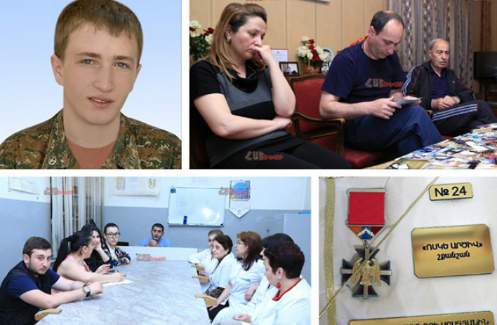 …Հետո մեկը մյուսին լրացնելով՝ խոսում են դասախոսներդ, պատմում են, հիշում` Նունե Մեժլումյանը, Կարինե Օհանյանը, Լաուրա Դազդուրջյանը, Ռուզաննա Ամարյանը… Հիշում են, թե որքան գեղեցիկ էիր զինվորական համազգեստի մեջ, երբ արձակուրդ էիր եկել, թե ինչպես ասացիր` հանգիստ քնեք, ես սահմանին եմ: