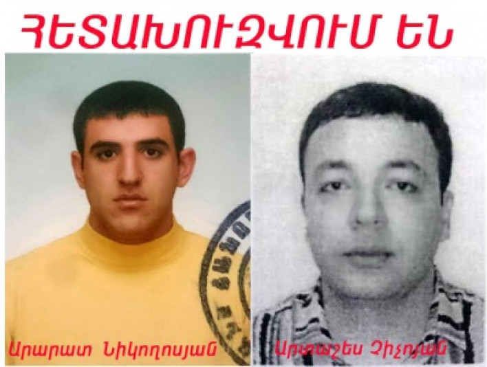 Այսօր` հունիսի 12-ին, ոստիկանության Երևան քաղաքի վարչության, ոստիկանության Էրեբունու բաժնի ծառայողները իրացնելով ստացված օպերատիվ տվյալները, Հայաստանի քննչական կոմիտեի Երևանի քննչական վարչության Էրեբունի և Նուբարաշեն քննչական բաժնի քննիչների հետ կատարելով բացատրական աշխատանքեր` հայտնաբերել են Երևան քաղաքի Էրեբունի փողոցի 3 շենքի 6-րդ բնակարանի բնակիչ, 23-ամյա Արտաշես Չիչոյանին և Երևան քաղաքի էրեբունի փողոցի 27 շենքի 30 բնակարանի բնակիչ, 26-ամյա Արարատ Նիկողոսյանին: Ինչպես հայտնում է ֆոտոլրագրող Գագիկ Շամշյանը, այսօր վաղ առավոտյան վերջիններս իրենց փաստաբանի հետ մեղայականով ներկայացել են ոստիկանության Էրեբունու բաժին: Ինչպես ավելի վաղ հայտնել էր ֆոտոլրագրողը, հունիսի 8-ին, Հայաստանի քննչական կոմիտեի Երևանի քննչական վարչության Էրեբունի և Նուբարաշեն վարչական շրջանների քննչական բաժնի քննիչ Գառնիկ Մաթևոսյանի որոշմամբ ձերբակալվել էր Երևան քաղաքի Էրեբունի փողոցի 22 շենքի 66 բնակարանի բնակիչ, 26-ամյա Խաչիկ Կոսյանը: Վերջինիս մեղադրանք էր առաջադրվել ՀՀ քր. օր.-ի 104 հոդվածի 2-րդ մասի 7-րդ և 10-րդ կետերի (սպանություն` մի խումբ անձանց կողմից խուլիգանական դրդումներով) հատկանիշով: Ֆոտոլրագրողի տեղեկություններով` Խ. Կոսյանը աշխատում է դատական ակտերի հարկադիր կատարման ծառայությունում և կային կասկածներ, որ նա իր 2 ընկերների` Երևան քաղաքի էրեբունի փողոցի 31 շենքի 6-րդ բնակարանի բնակիչ, 23-ամյա Արտաշես Չիչոյանի և Երևան քաղաքի Էրեբունի փողոցի 27 շենքի 30 բնակարանի բնակիչ, 26-ամյա Արարատ Նիկողոսյանի հետ այս տարվա հունիսի 5-ին Նուբարաշենի խճուղում դաժան ծեծի էին ենթարկել 58-ամյա Եղիշե Մանուկի Խաչատրյանին և թողնելով նրան անօգնական` բորենիների նման դիմել էին փախուստի: Քննչական մարմինը հետախուզում էր հայտարարել Ա. Նիկողոսյանի և Ա. Չիչոյանի նկատմամբ և Էրեբունի և Նուբարաշեն վարչական շրջանների ընդհանուր իրավասության դատարանը բավարարել է քննիչ Գ. Մաթևոսյանի միջնորդությունը և նրանց նկատմամբ որպես խափանման միջոց կալանքի որոշում էր կայացրել: Ճիվաղները եղել էին արտասահմանյան մակնիշի ավտոմեքենայով և Ե. Խաչատրյանին սպանելուց հետո այդ ավտոմեքենայով էլ ճողոպրել էին: Ծանուցում. Ենթադրյալ հանցանքի մեջ կասկածվողը կամ մեղադրվողը համարվում է անմեղ, քանի դեռ նրա մեղավորությունն ապացուցված չէ ՀՀ քրեական դատավարության օրենսգրքով սահմանված կարգով` դատարանի` օրինական ուժի մեջ մտած դատավճռով:
