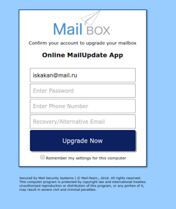 «Վերջին օրերին մի շարք ինտերնետից օգտվողներ սկսել են ստանալ էլեկտրոնային նամակներ, որոնց հիմնական իմաստը հետևյալն է․ տեքստում գրվում է (իբր մեյլի ադմինիստրացիայի կողմից), որ օգտվողի մեյլը արգելափակվելու է, կամ ջնջվելու է։ Նամակը պահանջում է մտնել հղումով և հաստատել, որ մեյլը ձերն է՝ ներմուծելով գաղտնաբառը և հեռախոսի համարը։