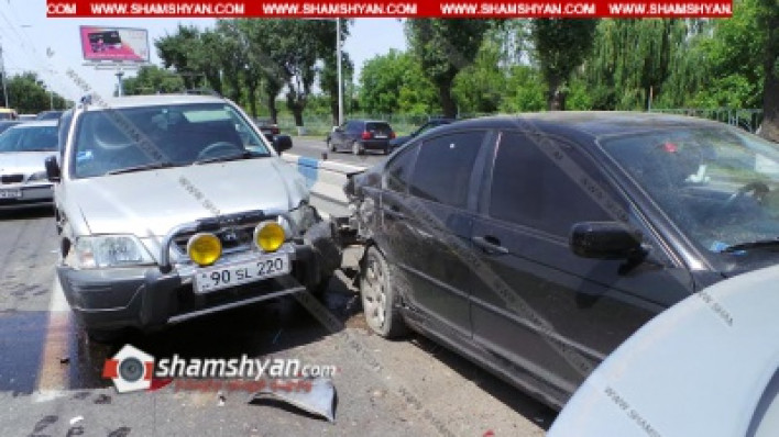 Այսօր` հունիսի 20-ին, շղթայական ավտովթար է տեղի ունեցել Երևանում: Ժամը 09:50-ի սահմաններում Իսակովի պողոտայում` ԱՄՆ դեսպանատան մոտ, բախվել են Hyundai մակնիշի 90 ՏԼ 220 համարանիշի, Opel մակնիշի 32 ՏՕ 274 համարանիշի, BMW մակնիշի 17 VT 700 համարանիշի, ВАЗ 2106 մակնիշի 09 ՏՕ 703 համարանիշի և Opel մակնիշի 17 PT 007 համարանիշի ավտոմեքենաները: Ինչպես դեպքի վայրից հայտնում է ֆոտոլրագրող Գագիկ Շամշյանը, վթարի հետևանքով 1 հոգի մարմնական վնասվածքներով տեղափոխվել է Սուրբ Գրիգոր Լուսավորիչ բժշկական կենտրոն: Դեպքի վայր են ժամանել ճանապարհային ոստիկանության 1-ին սպայական գումարտակի աշխատակիցները` Հայաստանի քննչական կոմիտեի Երևանի քննչական վարչության ավագ քննիչ Արգիշտի Տոնոյանի գլխավորությամբ, ում կողմից փաստի առթիվ նյութեր են նախապատրաստվում: Ժամանել է նաև Ռոսգոսստրախ ապահովագրական ընկերության ներկայացուցիչը, քանի որ, ըստ տեղեկությունների` վթարված 5 ավտոմեքենաներն էլ ապահովագրված են նշված ընկերությունում: Ոստիկանությունն ու քննչական բաժինը պարզում են վարորդների և վիրավորի ինքնությունը: Ֆոտոլրագրողը հայտնում է նաև, որ նշված հատվածում ճանապարհային ոստիկանները ուժեղացված ծառայություն են կատարում` խուսափելու համար խցանումից, իսկ խցանումը մինչև նրանց ժամանումը ձգվում էր մոտ 1,5 կիլիոմետր: Դեպքի վայրում հավաքվածները ասում էին, որ վարորդներին ու վիրավորին առաջինը օգնության են հասել ԱՄՆ դեսպանատան աշխատակիցները: Ծանուցում. Ենթադրյալ հանցանքի մեջ կասկածվողը կամ մեղադրվողը համարվում է անմեղ, քանի դեռ նրա մեղավորությունն ապացուցված չէ ՀՀ քրեական դատավարության օրենսգրքով սահմանված կարգով` դատարանի` օրինական ուժի մեջ մտած դատավճռով:
