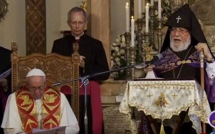 Հռոմի պապը «Զվարթնոց» օդանավակայանից մեկնեց Էջմիածին և եկեղեցական զանգերի ղողանջների ներքո մտավ Մայր տաճար: Մուտք գործելով Մայր տաճար` նա համբուրեց Սբ Ավետարանն ու Սբ Խաչը: Այնուհետև օրհնեց Մայր տաճարում գտնվող ժողովրդին, որից հետո ընթերցեց «Ի մեջ տաճարիս» աղոթքը: