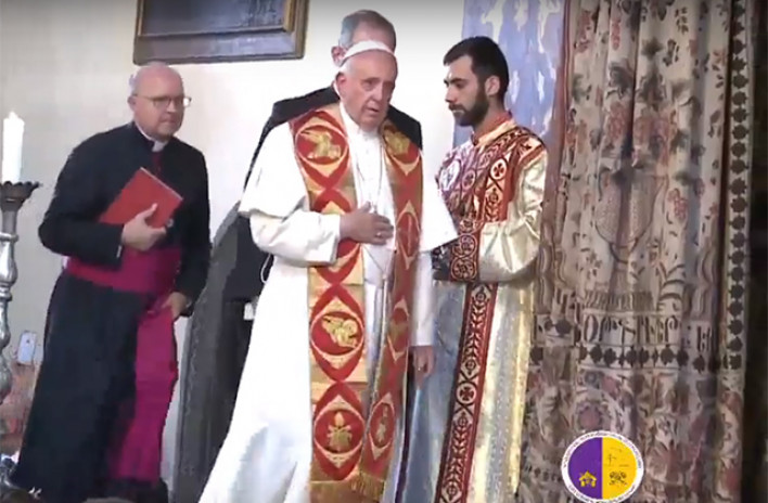 Հռոմի պապը ժամանեց Մայր Աթոռ սուրբ Էջմիածին: Նորին Սուրբ Օծություն Տեր-Տեր Գարեգին երկրորդ կաթողիկոսի ուղեկցությամբ Հռոմի պապը մտավ Մայր տաճար, համբուրեց այնտեղ դրված Խաչն ու Ավետարանը, ապա Ամենայն Հայոց կաթողիկոսի հետ բարձացավ Սուրբ խորան: Ամենայն Հայոց կաթողիկոսը շնորհակալություն հայտնեց Հռոմի պապին՝ Հայաստան ու Մայր տաճար այցելելու համար: Ամենայն Հայոց կաթողիկոսը շնորհակալություն հայտնեց պապին Ցեղասպանության 100-ամյա տարելիցին նվիրված իր պատարագի, Ցեղասպանությունը դատապարտող պատմական ճառի համար: