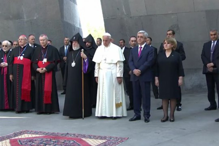 Հռոմի Ֆրանցիսկոս պապն այցելել է Հայոց ցեղասպանության հուշահամալիր: Նրան ուղեկցում են ՀՀ Նախագահ Սեւժ Սարգսյանը, Ն.Ս.Օ.Տ.Տ. Ամենայն Հայոց Գարեգին Բ կաթողիկոսը: Ամենայն Հայոց Գարեգին Բ կաթողիկոսի և բարձրաստիճան հոգևորականների մասնակցությամբ` նախատեսվում է բարեխոսության կարգ: Ըստ արարողակարգի` նախատեսվում է, որ Պապը ծաղիկներ կխոնարհի սուրբ նահատակների հիշատակին անմար կրակի մոտ, եղևնի կտնկի Ծիծեռնակաբերդի Հիշատակի պուրակում: Այս մասին գրում է ԱՐՄԵՆՊՐԵՍ-ը: