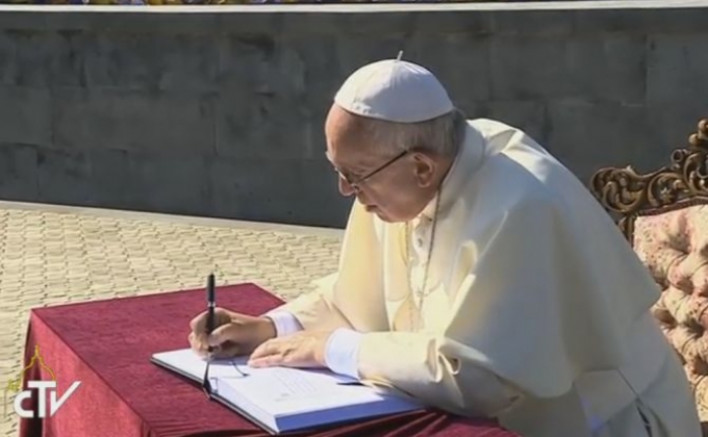 Հռոմի Սրբազան Քահանայապետ Ֆրանցիսկոս Պապը Ծիծեռնակաբերդի Հայոց ցեղասպանության հուշահամալիր այցելությունից հետո գրառում է թողել Հայոց ցեղասպանության թանգարան-ինստիտուտի պատվո այցելուների գրքում: