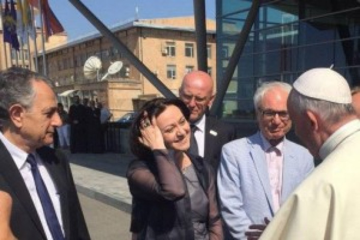 Հայ օպերային երգչուհի Հասմիկ Պապյանն ու կոմպոզիտոր Տիգրան Մանսուրյանը հանդիպել ու զրուցել են Հռոմի Ֆրանցիսկոս պապի հետ: Ֆեյսբուքյան իր էջում այս մասին գրառում է կատարել երգչուհին ու տեղադրել լուսանկար: