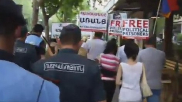 Ազատության հրապարակից մեկնարկեց երթ՝ ի պաշտպանություն Ժիրայր Սեֆիլյանի եւ մյուս քաղբանտարկյալների: Մի խումբ քաղաքացիներ քայլում են Երեւանի կենտրոնի փողոցներով ու կոչ անում հանուն հայրենիքի ազատության միանալ իրենց երթին:
