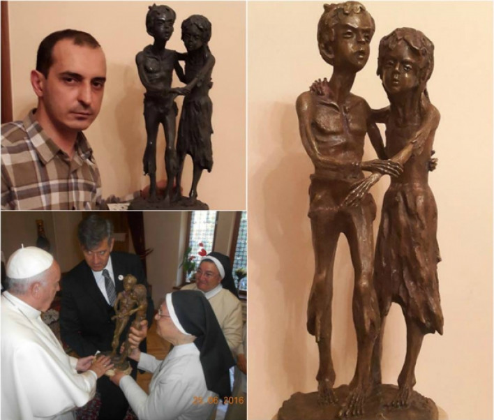 Պապը Գյումրիում նվեր է ստացել քանդակագործ Gago-ի (Գագիկ Գևորգյանի) «Հայ որբուկներ» կոչվող արվեստի գործը: Քանդակը նվեր է եղել Հռոմի պապին Գյումրու Անարատ Հղության քույրերի միաբանության կողմից: