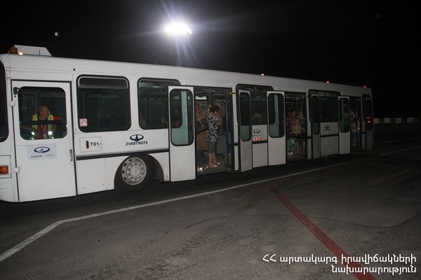 Ուղևորներին դիմավորել են ՀՀ ԱԻՆ բժշկական և հոգեբանական ծառայությունները՝ տեղում նրանց օգնություն ցուցաբերելու նպատակով: Գիշերվա ընթացքում սպասվում է ևս երկու չվերթ, որով Հայաստան կտեղափոխվեն ևս ՀՀ 108 քաղաքացի: