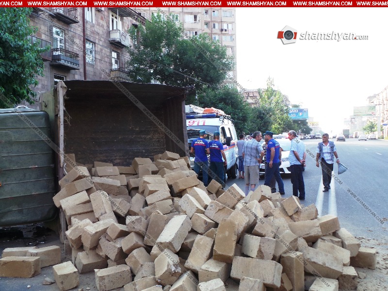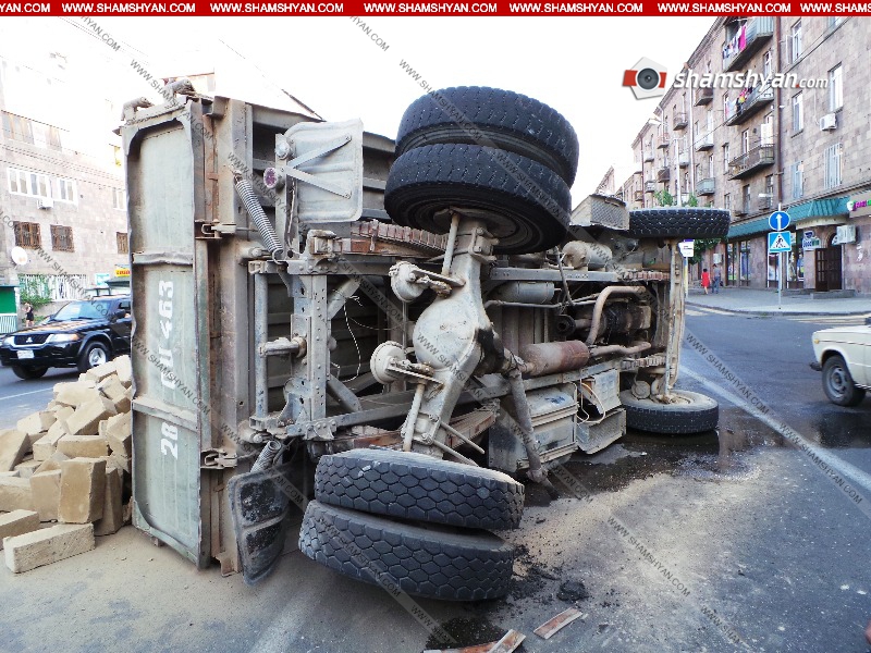 Երևանում քարով բեռնված ЗИЛ-ը կողաշրջվել է. լուսանկարներ