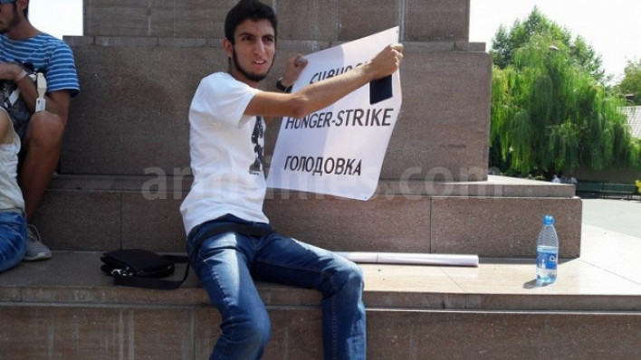 Armtimes.com-ի տեղեկություններով` քիչ առաջ Երեւանի Ազատության հրապարակում անժամկետ հացադուլ է հայտարարել Շանթ Հարությունյանի որդին՝ Շահեն Հարությունյանը:Վերջինս պահանջում է իշխանություններից ազատ արձակել քաղբանտարկյալներին: Նա Թումանյանի արձանի պատվանդանին պաստառներ է փակցրել, որոնց վրա գրել է «Հացադուլ» եւ «Ազատություն Դավիթ Սանասարյանին եւ Հայաստանի բոլոր քաղբանտարկյալներին»: