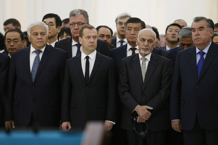 ՌԴ կառավարության ղեկավար Դմիտրի Մեդվեդևը, Աֆղանստանի նախագահ Աշրաֆ Ղանի Ահմաձայը և Տաջիկստանի նախագահ Էմոմալի Ռահմոնը: