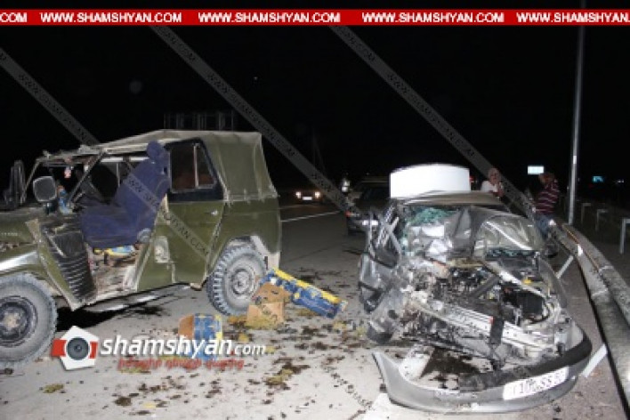 Այսօր՝ սեպտեմբերի 5-ին, խոշոր ավտովթար է տեղի ունեցել Արարատի մարզում: Ժամը 19:20-ի սահմաններում Երևան-Մեղրի ավտոճանապարհի 20-րդ կմ հատվածում բախվել են Opel մակնիշի 100 ՏՏ 50 համարանիշի և УАЗ-469 մակնիշի 34 ՍF 575 համարանիշի ավտոմեքենաները: Ինչպես դեպքի վայրից հայտնում է ֆոտոլրագրող Գագիկ Շամշյանը, վթարի հետևանքով 3 հոգի մարմնական վնասվածքներով տեղափոխվել են Արտաշատի բժշկական կենտրոն, որտեղից 2 հոգին տեղափոխվել են Երևան: Դեպքի վայր են ժամանել ճանապարհային ոստիկանության 2-րդ սպայական գումարտակի 1-ին վաշտի 2-րդ դասակի աշխատակիցները՝ դասակի հրամանատար Սանասար Հարությունյանի գլխավորությամբ: Վթարի մասին ՃՈ օպերատիվ կառավարման կենտրոնից տեղեկությունը փոխանցել են Հայաստանի քննչական կոմիտեի Արարատի մարզային քննչական վարչություն, որտեղից ժամանել է քննչական խումբը, որտեղ փաստի առթիվ նյութեր են նախապատրաստվում: Քննիչի հանձնարարականով ավտոմեքենաները տեղափոխվել են ոստիկանության Արտաշատի բաժնի պահպանվող հատուկ տարածք: Ոստիկանությունն ու քննչական բաժինը պարզում են վարորդների և վիրավորների ինքնությունը: Ծանուցում. Ենթադրյալ հանցանքի մեջ կասկածվողը կամ մեղադրվողը համարվում է անմեղ, քանի դեռ նրա մեղավորությունն ապացուցված չէ ՀՀ քրեական դատավարության օրենսգրքով սահմանված կարգով` դատարանի` օրինական ուժի մեջ մտած դատավճռով: