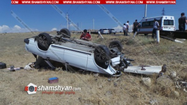 Խոշոր ավտովթար Կոտայքի մարզում. 25-ամյա վարորդը «07»-ով բախվել է երկաթբետոնե արգելապատնեշին և գլխիվայր շրջվել