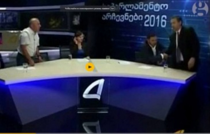 «Արդյունաբերողներ» քաղաքական դաշինքից խորհրդարանական թեկնածու Փոլադ Խալիկովը և դեմոկրատ Վեպխիա Գուրգենիշվիլին սկսել են իրար վիրավորել, այնուհետև վերջինս գրիչ է նետել մյուս հյուրի վրա: