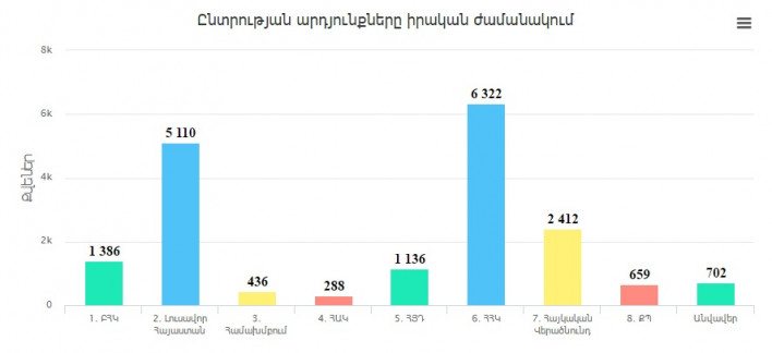 Ըստ real-elections.am կայքի` ժամը 22:20-ի դրությամբ Գյումրիում ավագանու անդամների ընտրությունների արդյունքները հետևյալն են.