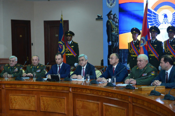 ՀՀ Նախագահ, զինված ուժերի գերագույն գլխավոր հրամանատար Սերժ Սարգսյանն այսօր այցելել է Պաշտպանության նախարարություն և բանակի բարձրագույն սպայական կազմին ներկայացրել Պաշտպանության նորանշանակ նախարար Վիգեն Սարգսյանին և Զինված ուժերի գլխավոր շտաբի նորանշանակ պետ Մովսես Հակոբյանին: Հանրապետության նախագահն անդրադարձել է նաև այն հանգամանքներին, որոնք հաշվի է առել այդ որոշումները կայացնելիս: Այդ համատեքստում Սերժ Սարգսյանը հանգամանորեն խոսել է նոր Սահմանադրությամբ Պաշտպանության նախարարի, նախարարության և ԶՈւ գլխավոր շտաբի դերակատարության մասին մեր երկրի պետական կառավարման համակարգում: Նախագահը նաև վստահություն է հայտնել, որ Սեյրան Օհանյանը առաջիկայում կվերադառնա հայրենիքին ծառայության և իր օգտակար ու կարևոր ներդրումը կունենա մեր երկրի պաշտպանունակության ամրապնդման գործում: Պաշտպանունակությունը, նախագահի խոսքով, միայն Պաշտպանության նախարարությունը չէ: