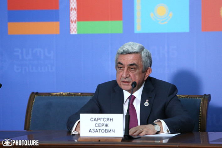 Երևանյան նստաշրջանն ամփոփում է Կազմակերպությունում Հայաստանի նախագահությունը: Նստաշրջանների միջև ընկած ժամանակահատվածում ձեռնարկվել են որոշակի միջոցներ ՀԱՊԿ-ում հետագա փոխգործակցության համալրման ուղղությամբ: Աշխատանքն ուղղված է եղել Կազմակերպության ներուժի մեծացմանը՝ ելնելով այն նպատակներից և խնդիրներից, որոնք սահմանված են Հավաքական անվտանգության մասին պայմանագրով, որի 25-ամյակը տոնելու ենք հաջորդ տարի», ՀԱՊԿ Հավաքական անվտանգության խորհրդի լիագումար նստաշրջանում ասել է Սերժ Սարգսյանը: