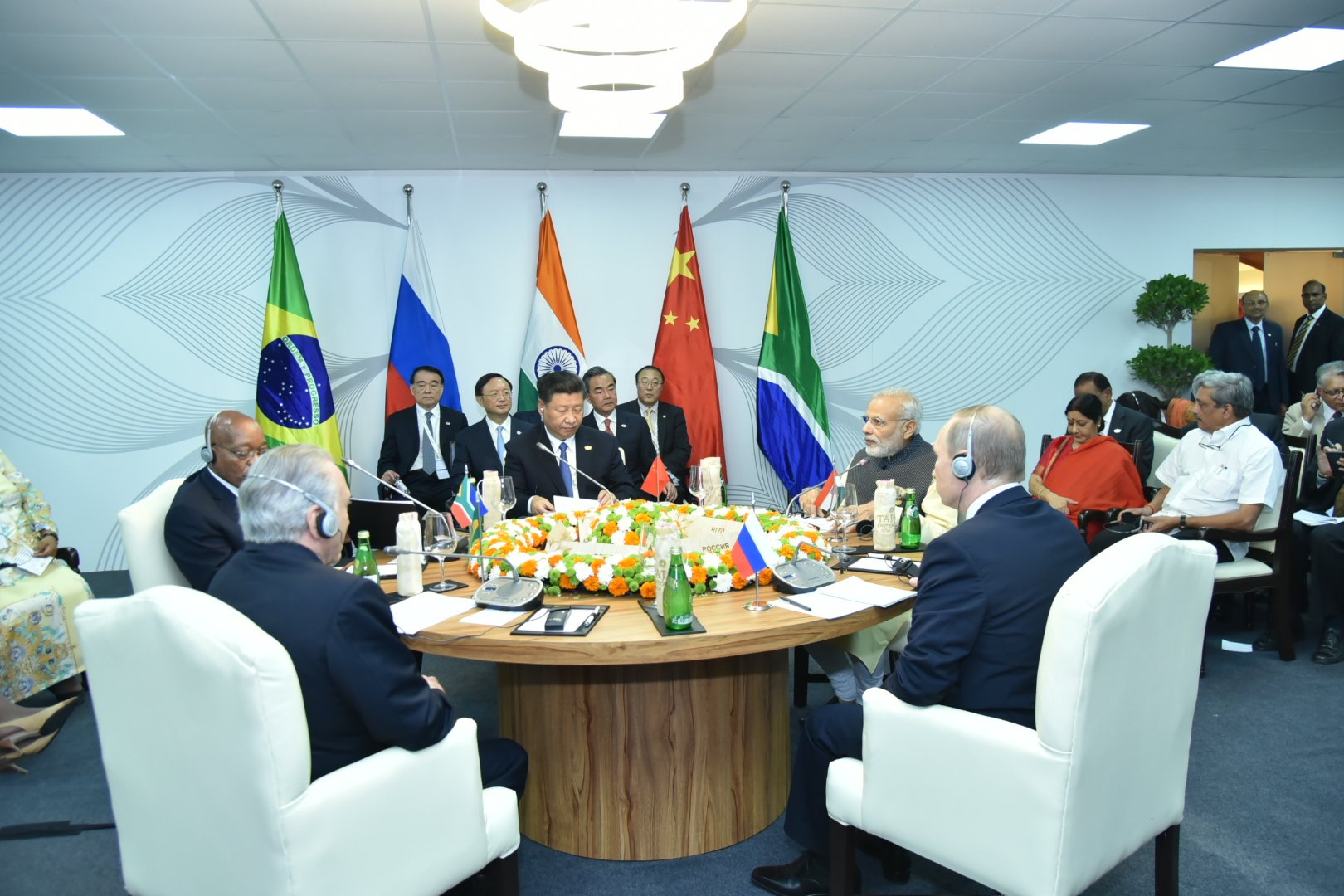 Լուսանկարվելուց հետո ծրագրված են գագաթնաժողովի պաշտոնական միջոցառումները, որոնք կանցկացվեն Taj Exzotica հյուրանոցում: Ռուսաստանի, Բրազիլիայի և ՀԱՀ-ի նախագահներ Վլադիմիր Պուտինը, Միշել Թեմերը և Ջեկոբ Զուման, ինչպես նաև Հնդկաստանի վարչապետ Նարենդրա Մոդին և Չինաստանի պետքարտուղար Սի Ցզինպինը կհանդիպեն նեղ կազմով, այնուհետև բանակցություններ կվարեն ԲՐԻԿՍ-ի Գործադիր խորհրդի անդամների հետ և լիագումար նիստ կանցկացնեն ազգային պատվիրակությունների մասնակցությամբ: