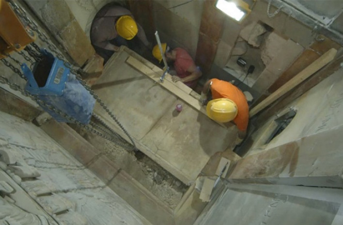 National Geographic-ը գրում է, որ հետազոտողները հանել են Երուսաղեմում Տիրոջ սուրբ գերեզմանի տաճարում աննախադեպ երևույթ է տեղի ունեցել:Առաջին անգամ հանվել է Հիսուս Քրիստոսի գերեզմանաքարը,որի մակերեսը ծածկված է եղել մարմարի հաստ շերտով: