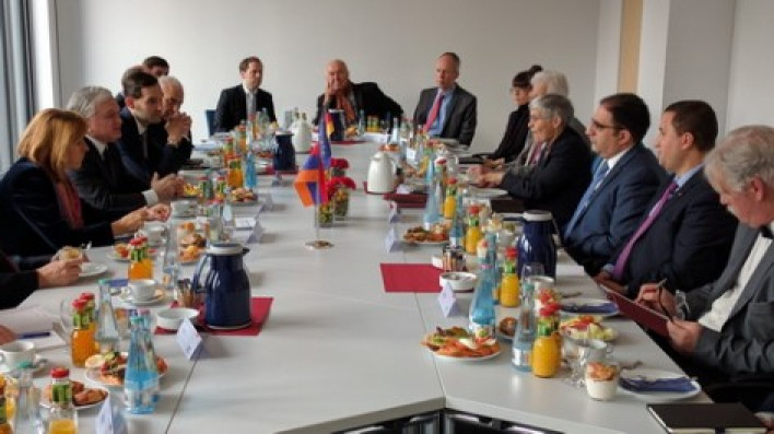 Նոյեմբերի 4-ին Բեռլինում արտգործնախարար Էդվարդ Նալբանդյանը Ֆրիդրիխ-Էբերթ հիմնադրամում հանդիպում ունեցավ Գերմանիայի Բունդեսթագի անդամների, առաջատար վերլուծաբանների և քաղաքագետների հետ: Հանդիպմանը ներկա էր Բունդեսթագի փոխնախագահ Էդելգարդ Բուլմանը: Հայաստանի ԱԳՆ ղեկավարը, արժևորելով Բունդեսթագի կողմից Հայոց ցեղասպանության ճանաչման բանաձևի ընդունումը, բարձր գնահատեց Գերմանիայի օրենսդիր մարմնի սկզբունքային դիրքորոշումը։ Հանդիպման ընթացքում քննարկում ծավալվեց հայ-գերմանական փոխգործակցության և դրա հետագա ամրապնդման և խորացման հեռանկարների շուրջ։ Էդվարդ Նալբանդյանն անդրադարձավ Հայաստան – Եվրոպական միություն հարաբերություններին։ Հայաստանի արտաքին քաղաքական գերատեսչության ղեկավարը զրուցակիցներին ներկայացրեց ապրիլին Ադրբեջանի կողմից Արցախի դեմ սանձազերած լայնածավալ ռազմական գործողությունների մանրամասները, այդ թվում միջազգային մարդասիրական իրավունքի աղաղակող ոտնահարումները, ադրբեջանական ագրեսիայից հետո Վիեննայում և Սանկտ-Պետերբուրգում կայացած գագաթաժողովների արդյունքները, ղարաբաղյան հիմնախնդրի կարգավորման գործընթացի առաջ մղման համար համապատասխան պայմանների ստեղծման նպատակով Հայաստանի և ԵԱՀԿ Մինսկի խմբի համանախագահ երկրների ջանքերը: Նախարարը նշեց, որ Ադրբեջանը հրաժարվում է իրականացնել այս կապակցությամբ գագաթաժողովներին ձեռք բերված պայմանավորվածությունները և, շարունակելով սրել իրավիճակը շփման գծում, լուրջ վնաս է հասցնում խաղաղ հանգուցալուծման այդ ջանքերին: Նախարար Նալբանդյանը շեշտեց. «Նման հերթական սադրիչ դրսևորումներից է մեկ շաբաթից Ադրբեջանում նախատեսված լայնածավալ զորավարժությունների անցկացումը, որոնցում, ըստ Բաքվի, ներգրավված են լինելու ադրբեջանական գրեթե ողջ զինուժը ու ռազմական տեխնիկան, ինչը սպառազինությունների վերահսկման միջազգային պարտավորությունների կոպտագույն խախտում է։ Սա է Ադրբեջանի ղեկավարութան արձագանքը ԵԱՀԿ Մինսկի խմբի համանախագահ երկրների՝ հիմնախնդրի բացառապես խաղաղ կարգավորմանն ուղղված բանակցային գործընթացն առաջ մղելու կոչերին»։ ՀՀ ԱԳՆ ղեկավարը գերմանացի օրենսդիրներին և փորձագետներին տեղեկացրեց Հայաստանում ընթացող բարեփոխումների մասին, կարևորելով այդ գործընթացում գործընկեր երկրների և միջազգային կազմակերպությունների օժանդակությունը։ Անդրադարձ եղավ մի շարք հրատապ տարածաշրջանային խնդիրներին և դրանց հանգուցալուծման հնարավորություններին։ Հանդիպմանը ծավալված շահագրգիռ քննարկման ընթացքում ՀՀ արտաքին քաղաքական գերատեսչության ղեկավարը պատասխանեց ներկաների բազմաթիվ հարցերին: