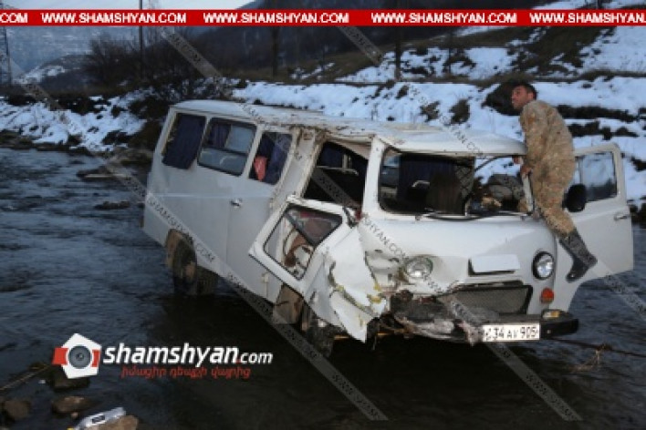 Խոշոր ավտովթար Մեղրաձոր գյուղում․ բախվել են Нива-ն ու УАЗ-ը․ վերջինը հայտնվել է Մարմարիկ գետում