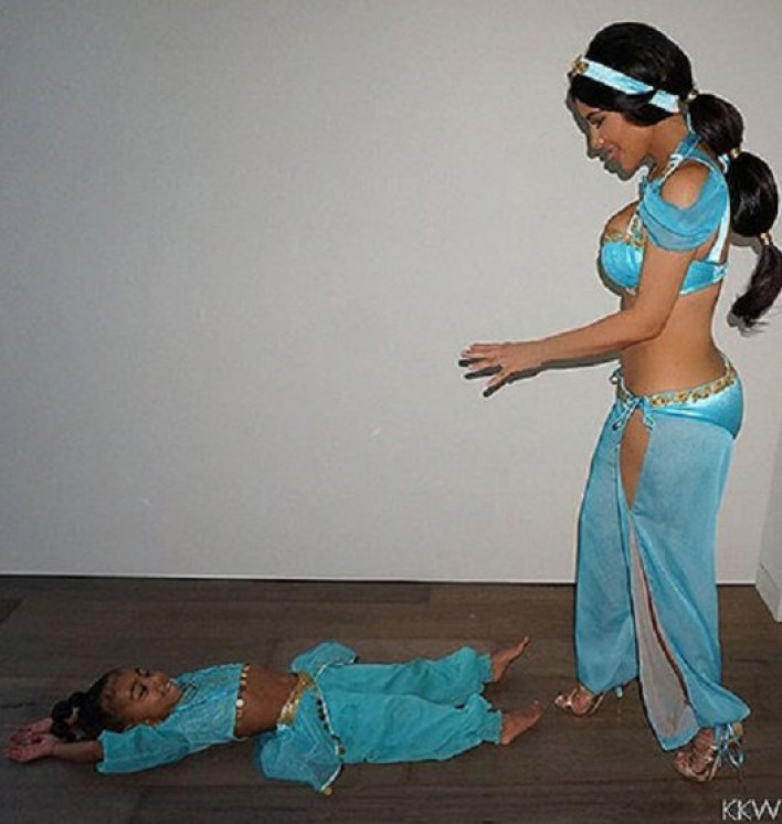 Օրերս Քիմ Քարդաշյանի եղբայրը նվեր է արել իր աստղային քրոջ երկրպագուներին և հրապարակել նրա պաշտոնական կայքում լուսանկարներ Հելոուինի առթիվ փակ երեկույթից: Այս տարի Քիմն ընտրել է արքայադուստր Ժասմինի կերպարը: Մերկացնելով շքեղ կուրծքը, Քարդաշյանը ցուցադրել է նաև հարթ որովայնը: