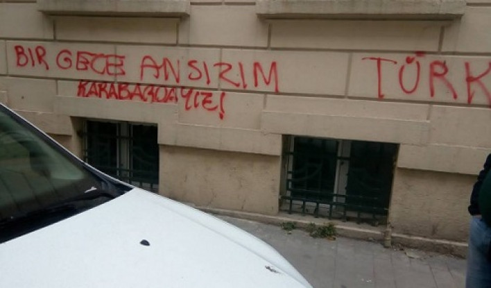 Պատի վրա ազգայնականները թողել են հետևյալ գրառումը. «Մի օր մենք անսպասելիորեն կհայտնվենք Ղարաբաղում»։