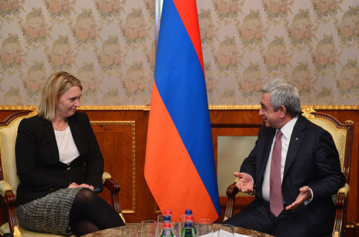 Նախագահ Սերժ Սարգսյանն այսօր ընդունել է տարածաշրջանային այցով Հայաստան ժամանած Ամերիկայի Միացյալ Նահանգների պետքարտուղարի Եվրոպայի և Եվրասիայի հարցերով փոխտեղակալ Բրիջիթ Բրինքին: