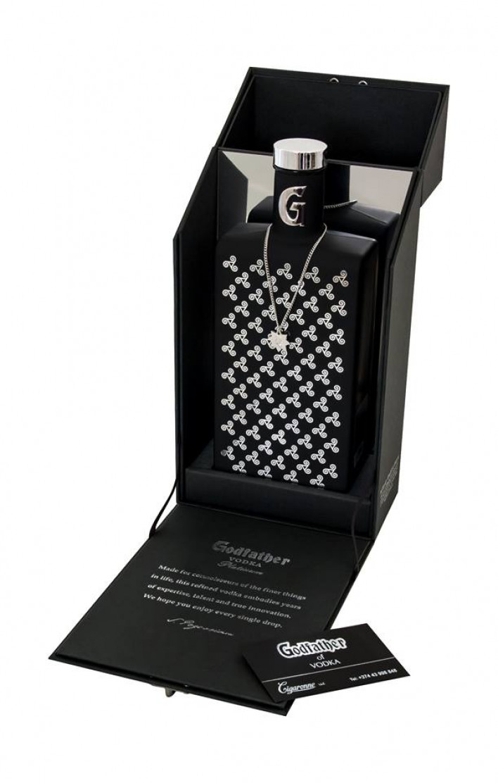 «Godfather PLATINUM» օղին, կամ ինչպես ասվեց օղիների կնքահայրը, նուրբ համային հատկանիշներով ու շքեղ դիզայնով ընհանրապես մրցակցությունիցդուրս է: Հայկական լեռնաշխարհի աղբյուրների անապակ ջրով պատրաստված բարձրակարգ այս օղու անթերի որակի մասին փաստում են փորձաքննության արդյունքները, որոնք արվել են FDA միջազգային անկախ փորձագիտական լաբորատորիայի կողմից՝ որակի վերահսկողության և սերտիֆիկացման եվրոպական SGS անկախ ընկերության սահմանաչափերի համաձայն: