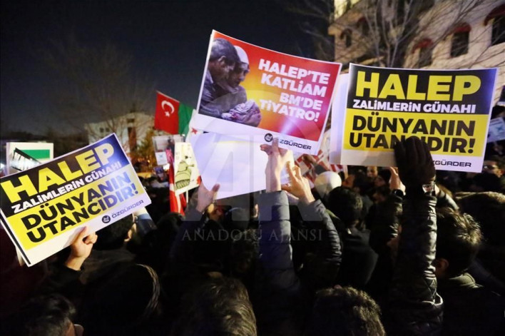 Ըստ «Անադոլու» գործակալության՝ Թուրքիայում ՌԴ հյուպատոսություններից հետո բողոքի ցույցեր են տեղի ունեցել նաև Անկարայում Իրանի դեսպանատան և Ստամբուլում գտնվող հյուպատոսության առջև:Ցուցարարների ձեռքերին եղել է «Մարդասպա՛ն Իրան, դո՛ւրս արի Սիրիայից», «Փրկենք Հալեպը» գրությամբ պաստառներ։