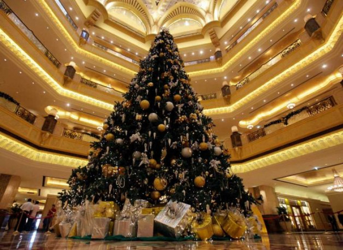 Հյուրանոցի սրահում եղևնին զարդարված է թանկաժեք քարերով՝ ադամանդներով, զմրուխտներով, շափյուղաներով, ոսկե ու արծաթե գնդիկներով: